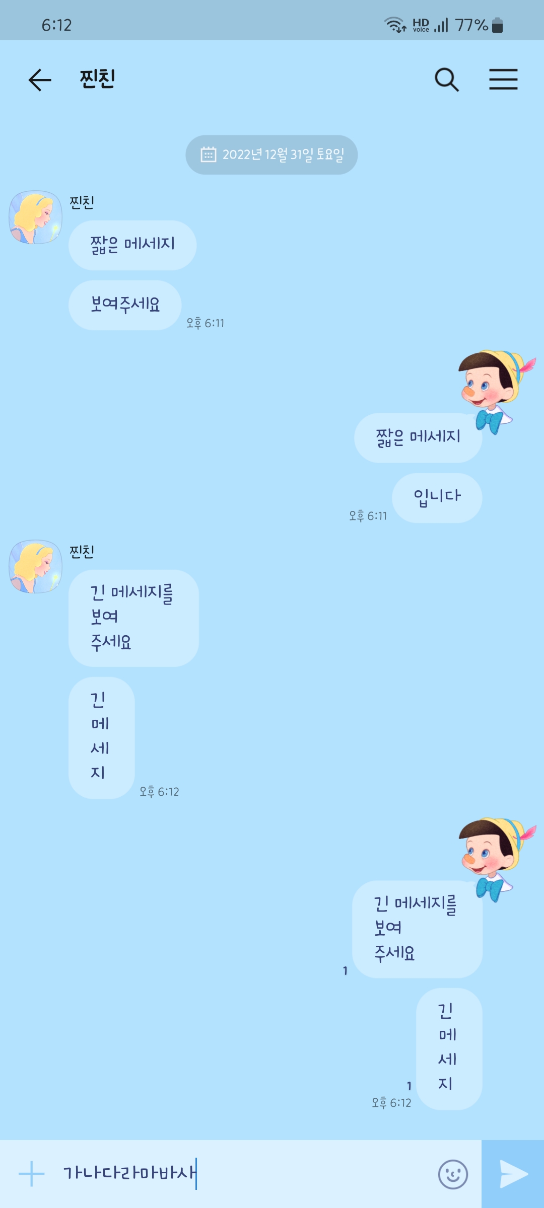 하늘색의 피노키오와 친구들 카카오톡 테마 입니다. 동화 속 삽화같은 느낌의 디즈니 피노키오의 팬아트로 만들었습니다. 말풍선에는 귀여운 피노키오가 웃으면서 말을 하고 있습니다. 하단 메뉴바와 잠금버튼은 애니메이션 피노키오에 나오는 다양한 소품들로구성되어있습니다.