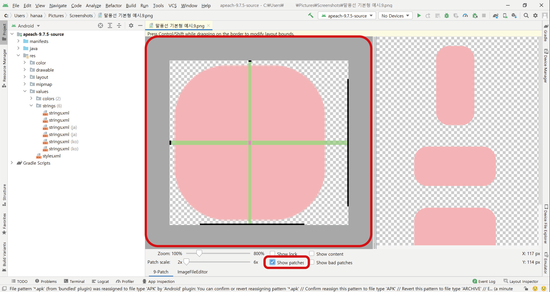 4. 안드로이드 스튜디오에서 나인패치 이미지 수정하기