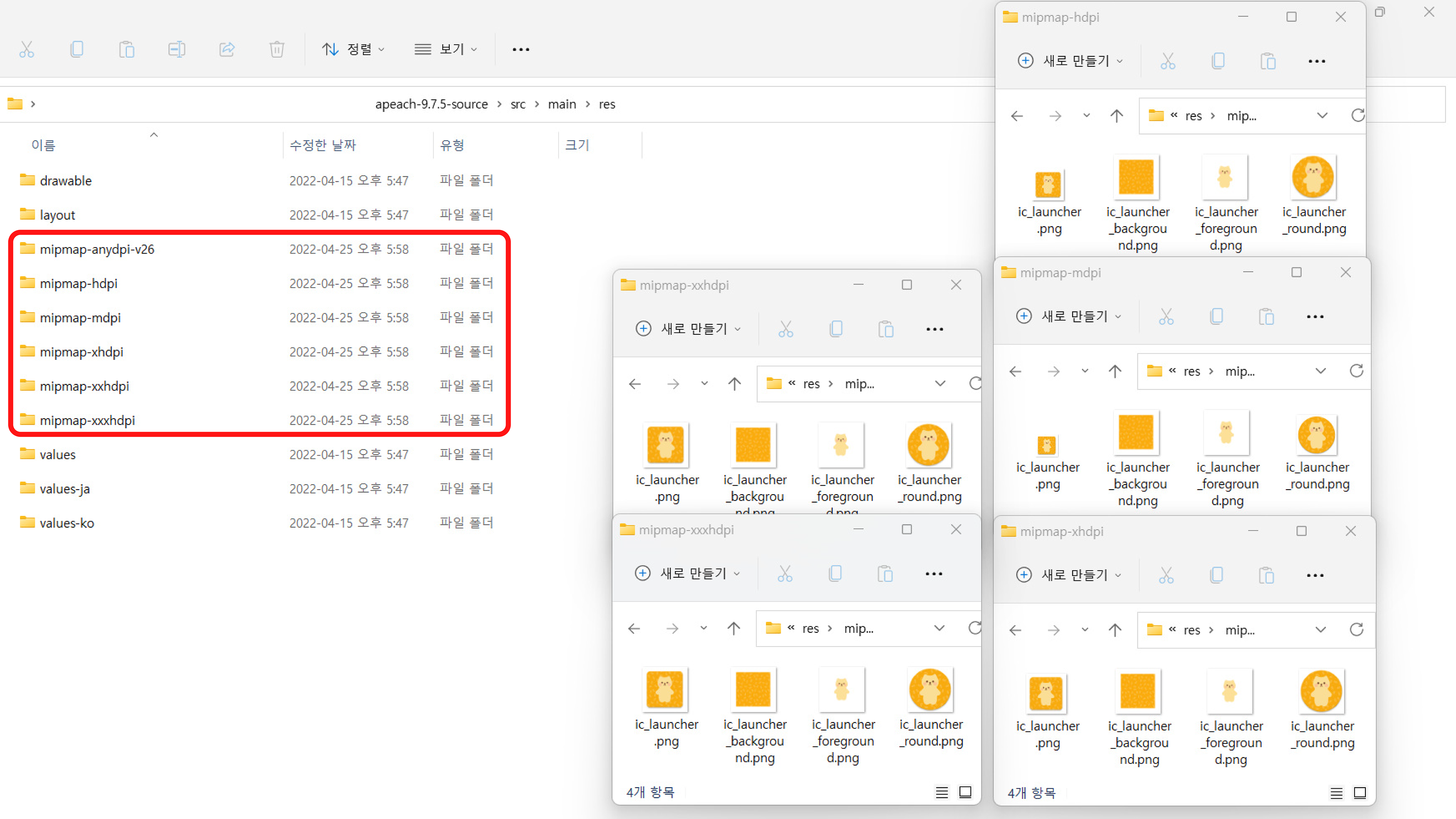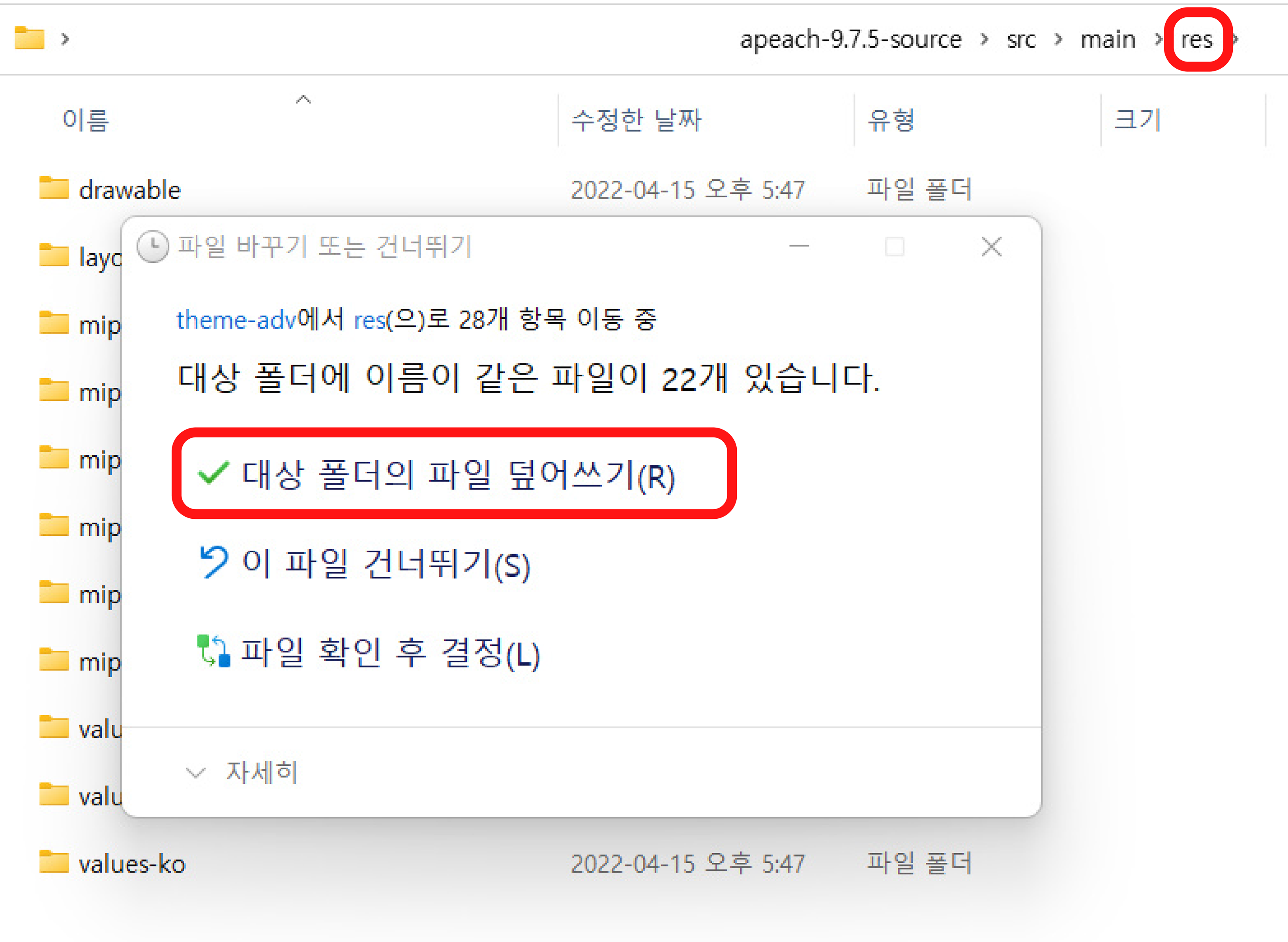 우리는 Android_Sample_Theme_220405 > apeach-9.7.5-source > src > main > res 경로에서