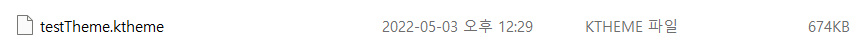 이렇게 압축된 파일의 확장자를 .zip에서 .ktheme으로 바꿔서 저장해주면 됩니다. 저는 테스트 테마니까 ios.zip을 testTheme.ktheme으로 바꿔서 저장해줬습니다.