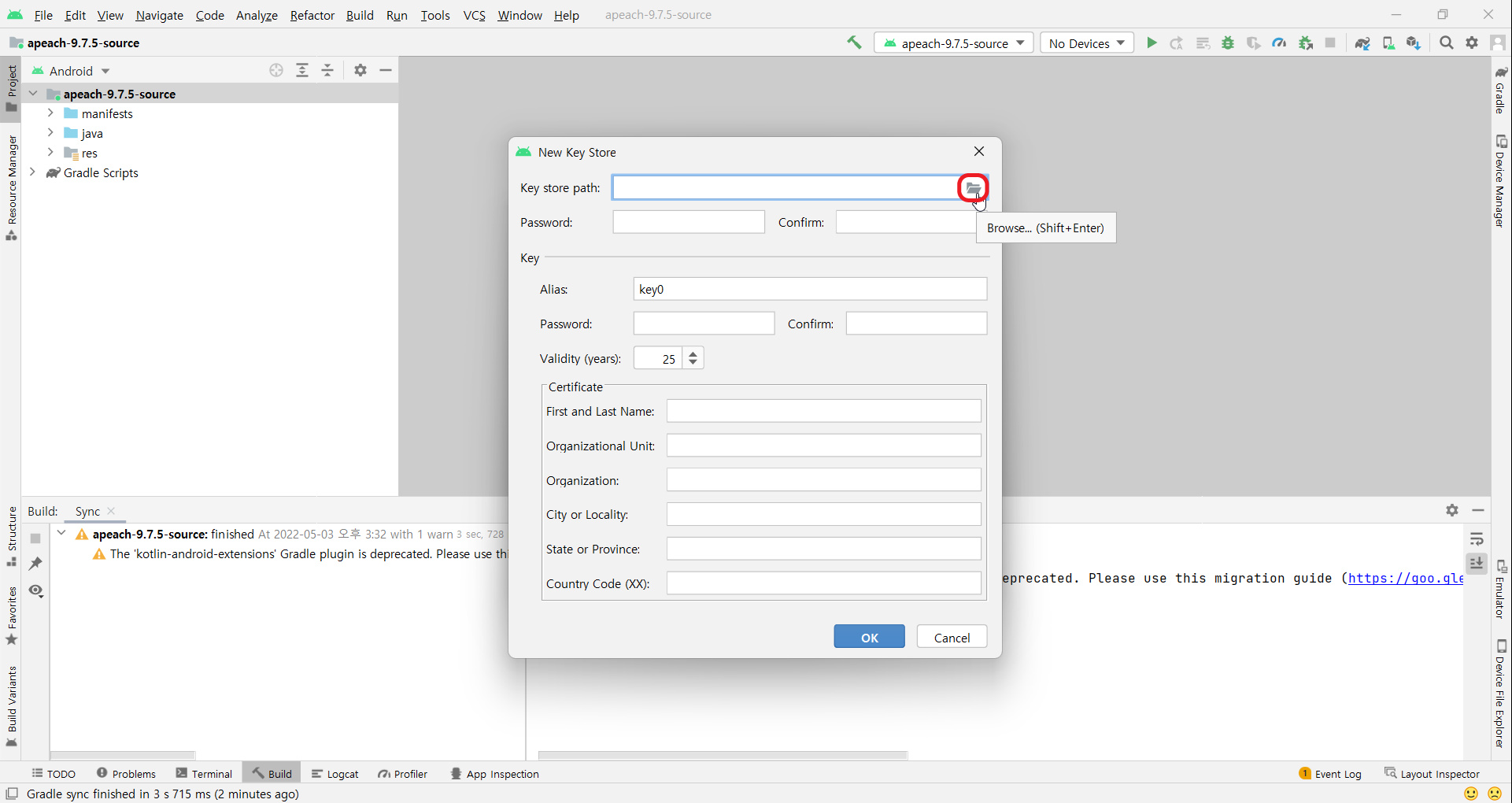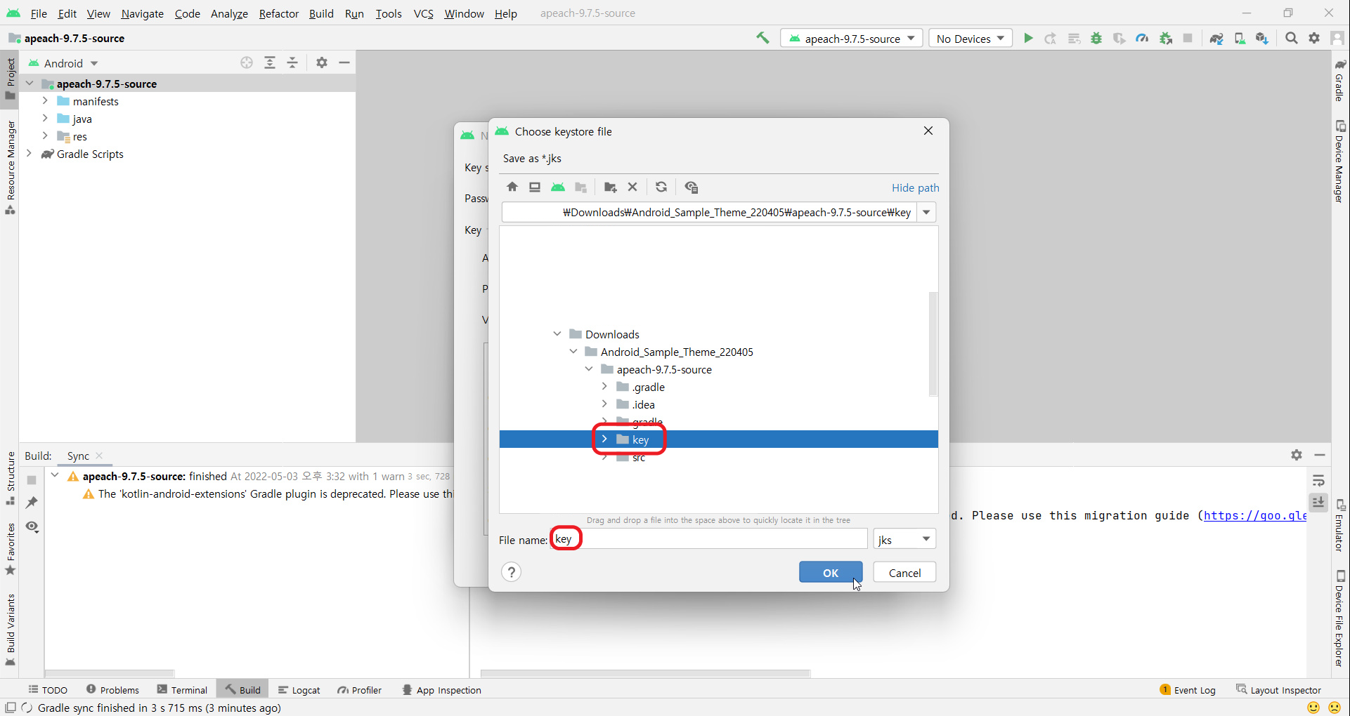 만들어준 key 폴더를 선택하고 파일 명을 key라고 적고 OK 버튼을 눌러줍니다.