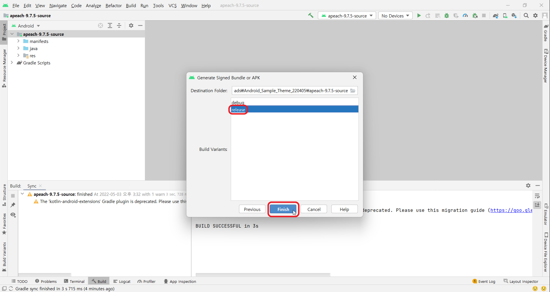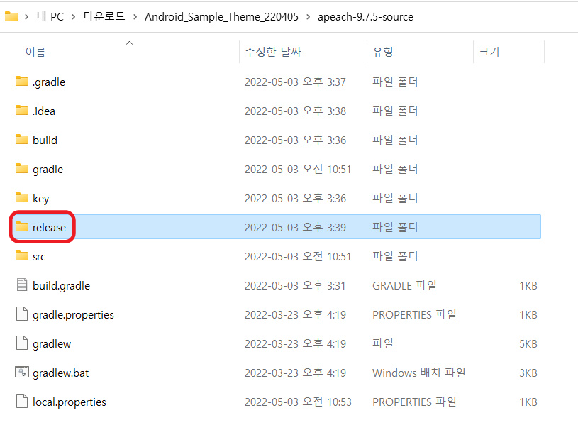 프로젝트 폴더 안 의 release 폴더안에 apk파일이 생성되었습니다.