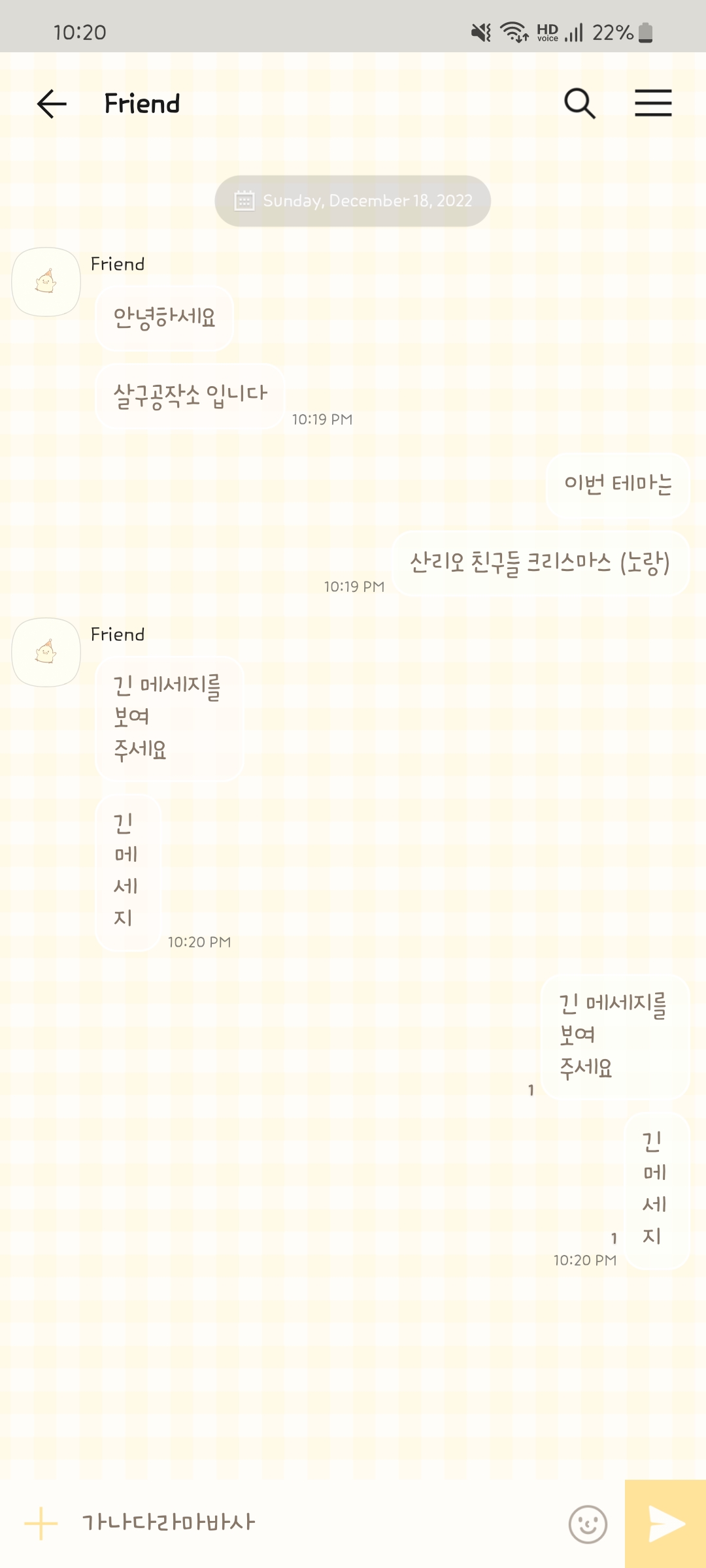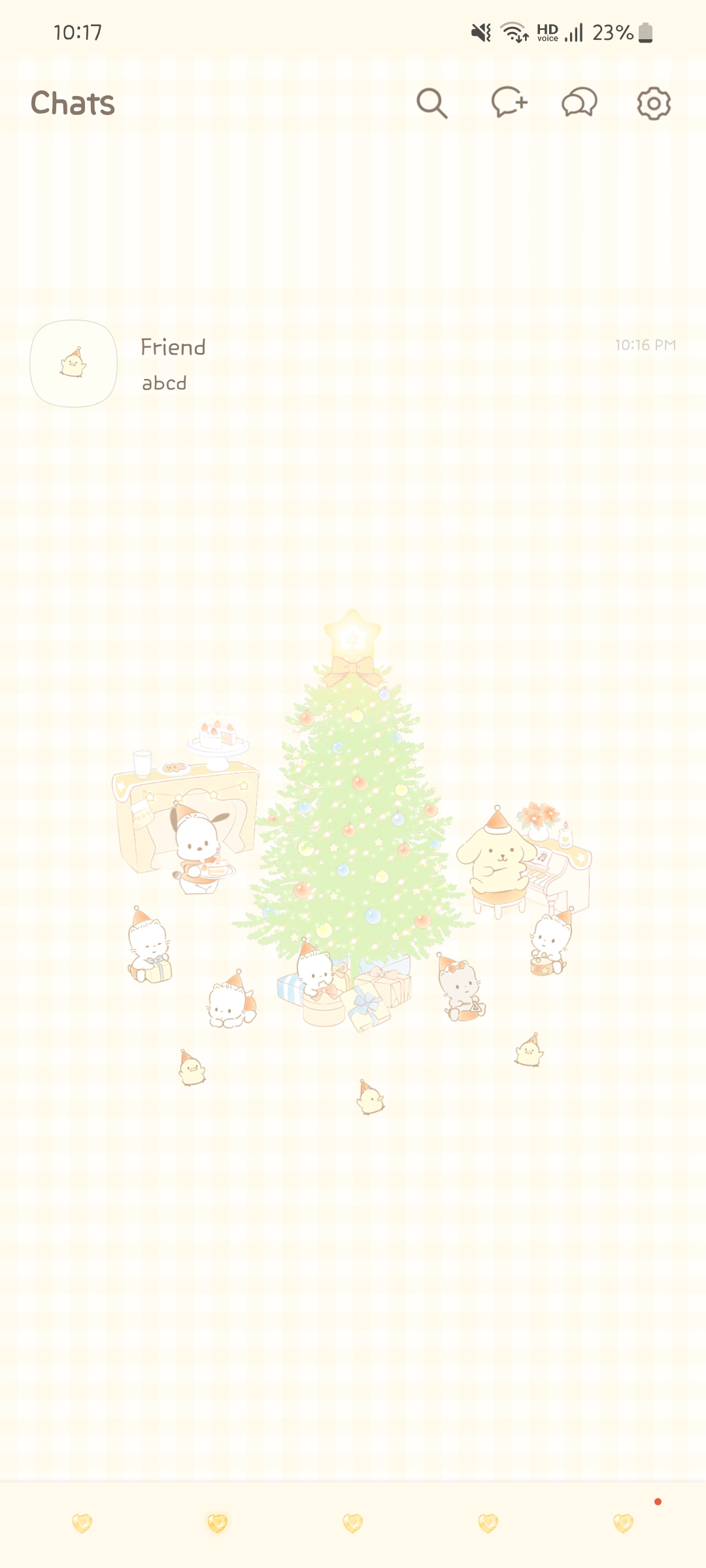 산리오 캐릭터인 냐니뉴네뇽, 포차코, 폼폼푸린과 피쨩즈의 노랑 크리스마스 카톡 테마입니다. 따뜻한 웜톤이라 포근한 느낌을 줘요!